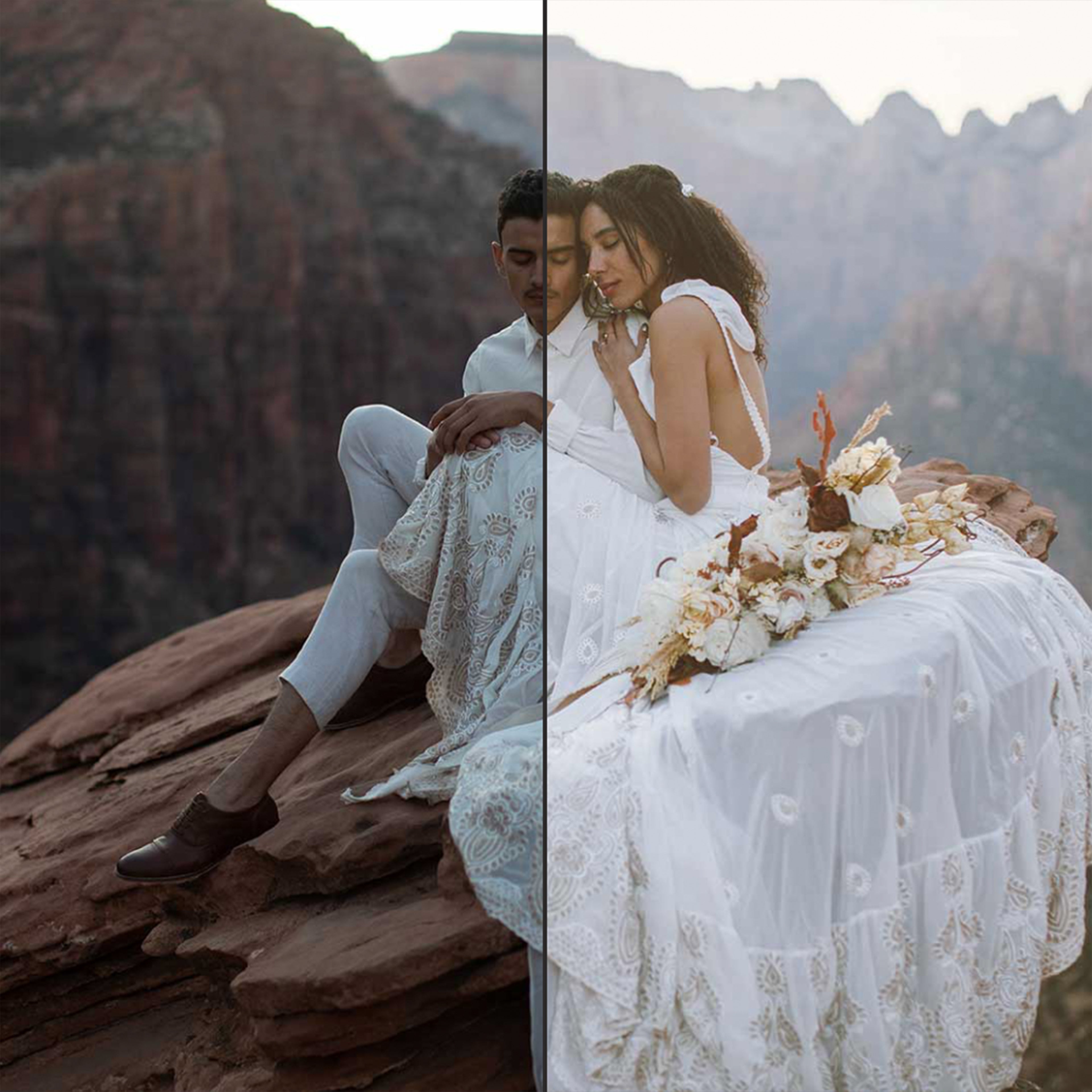 HAZE brings a clean, elegant, timeless look to your photos—soft skin tones, bright whites, and gentle contrast. Editorial yet natural, it elevates portraits, weddings, and everyday work in both Lightroom Classic and Mobile.