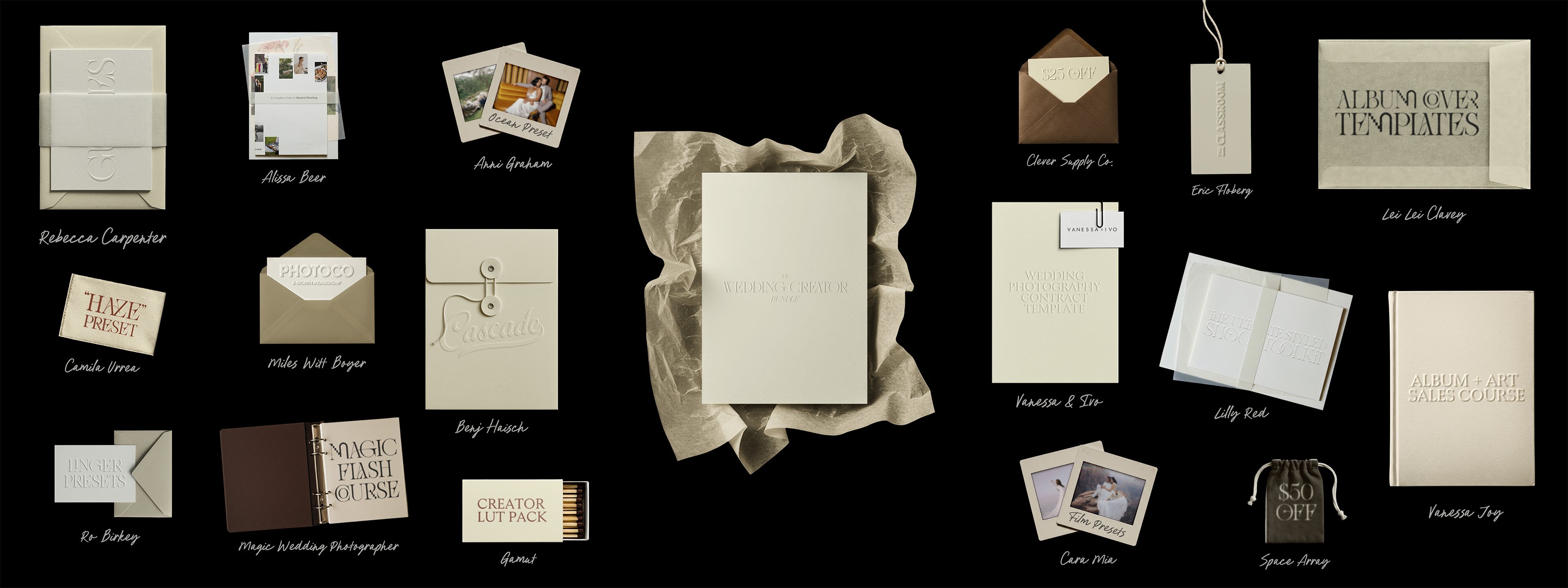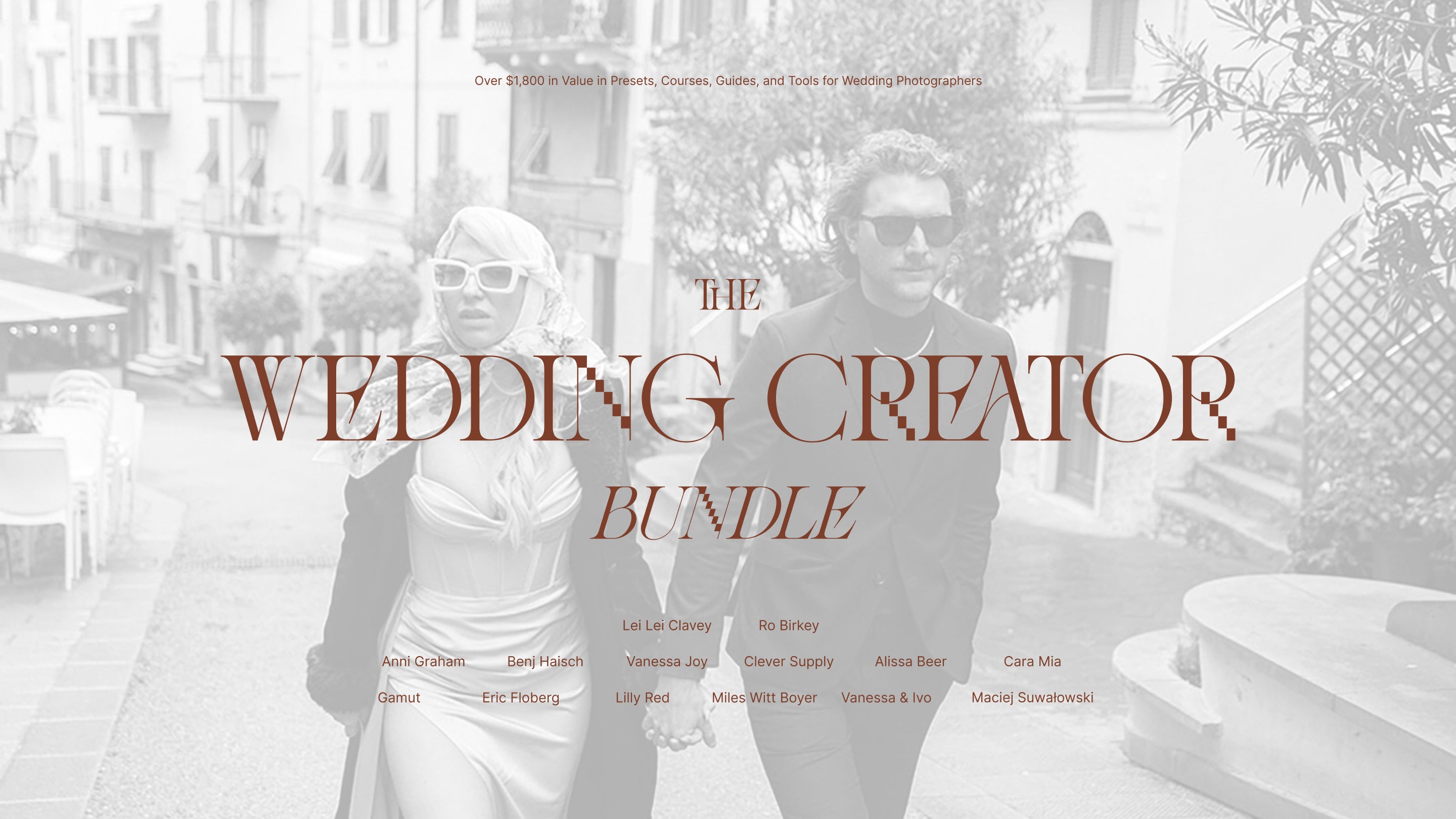It’s a once-a-year collaboration featuring 20+ tools, presets, courses, templates, and creative resources from the leading voices in wedding photography. The total value is over $1,800, but it’s available for a very limited time for $99–$149 depending on when you purchase.